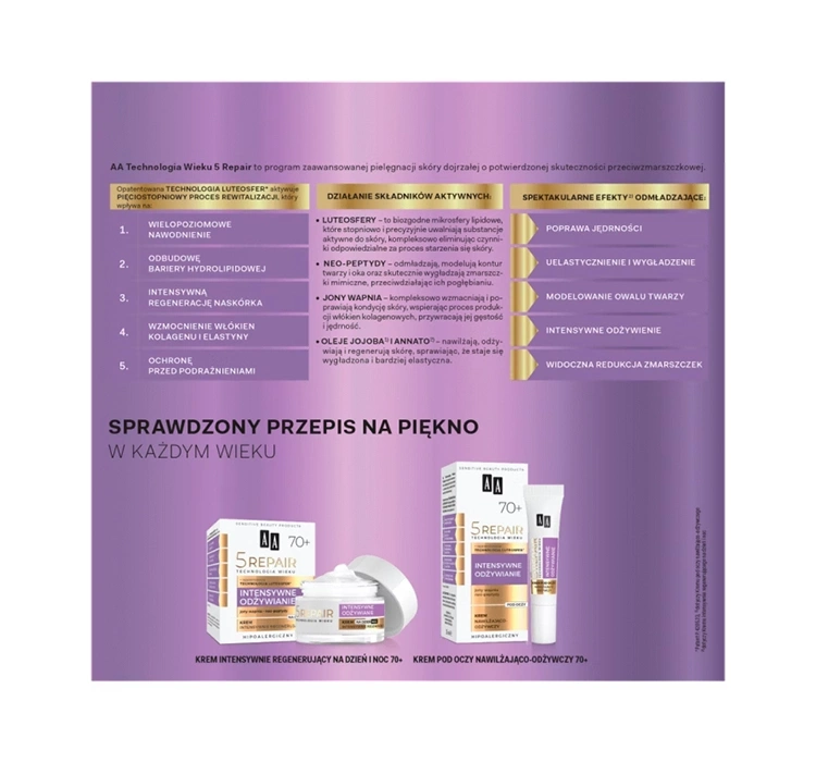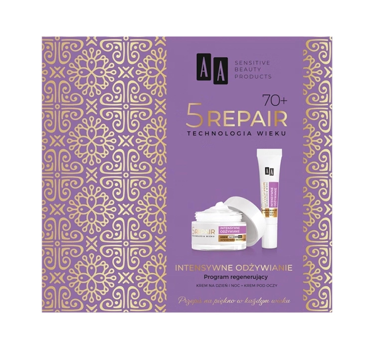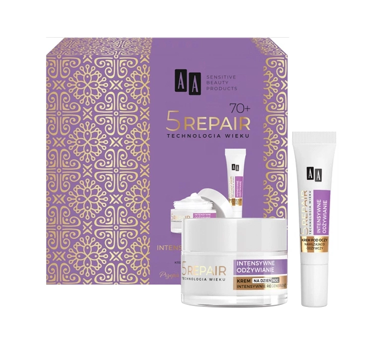 Im Geschenkset AA 5 Repair Intensive Nourishment 70+ enthalten sind:Regenerierende Gesichtscreme für Tag und Nacht AA 5 Repair Intensive Nourishment 70+, 50 ml