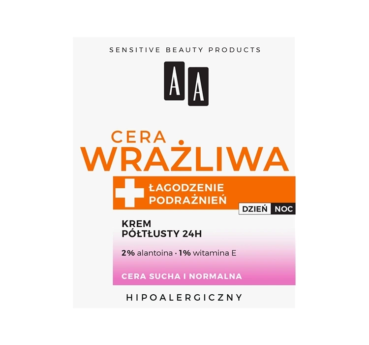 Die 24h semi-fettige Creme aus der AA Sensitive Skin Serie hat eine hypoallergene, dermatologisch getestete Formel, abgestimmt auf die Bedürfnisse sensibler und zu Allergien neigender Haut. Die Kosmetik enthält keine Duftstoffe, Parabene oder Farbstoffe. Sie hat einen neutralen pH-Wert für die Haut.