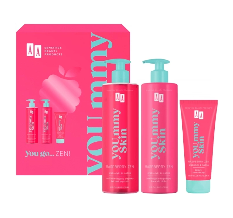 Im Geschenkset AA You go...Zen enthalten sind:Multihydratisierendes Öl-Duschgel Raspberry Zen, 400 ml