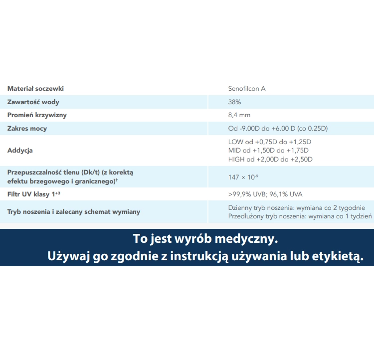 Kontaktlinsen und Pflegemittel sind in der Regel Medizinprodukte der Klasse IIa gemäß der Verordnung (EU) 2017/745 (MDR) und dem Gesetz über Medizinprodukte vom 7. April 2022 (Dz.U. 2022 poz. 974). Konsultieren Sie vor der Anwendung einen Spezialisten und befolgen Sie die Gebrauchsanweisung.