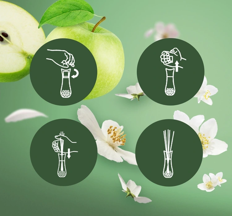 Die Formel der Air Wick Duftstäbchen basiert auf hochwertigen ätherischen Ölen, die eine langanhaltende und natürliche Duftfreisetzung gewährleisten. Erhältlich in einer Vielzahl von Aromen – wie frische Zitrone, entspannender Lavendel oder exotische Mango – ermöglichen sie die individuelle Anpassung an persönliche Vorlieben. Die Duftstäbchen bestehen aus umweltfreundlichen Materialien, was ihre sichere Anwendung und Umweltverträglichkeit garantiert.