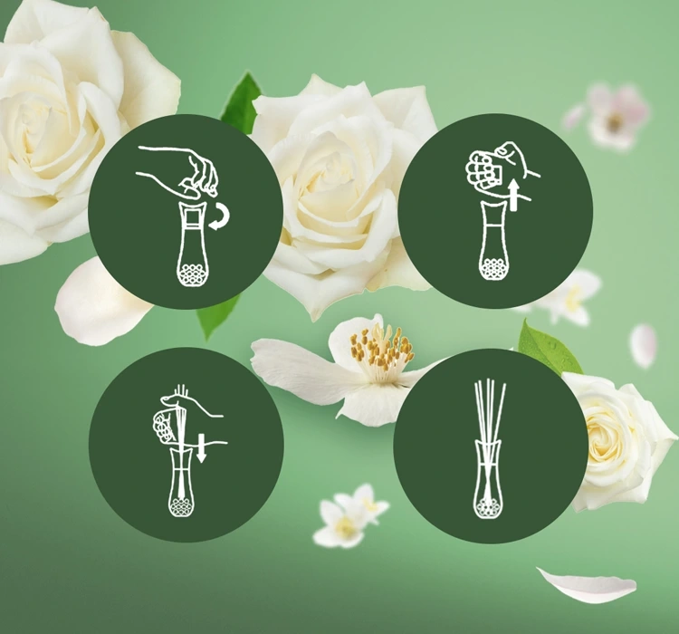 Öffnen Sie den Flakon und stellen Sie einige Duftstäbchen gleichmäßig hinein. Platzieren Sie ihn im gewünschten Raum, fern von direkter Sonneneinstrahlung und Wärmequellen. Um die Frische des Aromas zu erhalten, drehen Sie die Stäbchen nach einigen Tagen um und ersetzen Sie sie alle 2–4 Wochen. Bewahren Sie das Set außerhalb der Reichweite von Kindern und Haustieren auf und vermeiden Sie den Kontakt der Öle mit empfindlichen Oberflächen. Air Wick Regenfrische der Amazonas-Wälder sorgt für einen langanhaltenden, natürlichen Duft, der Harmonie und Entspannung in jeden Raum bringt.