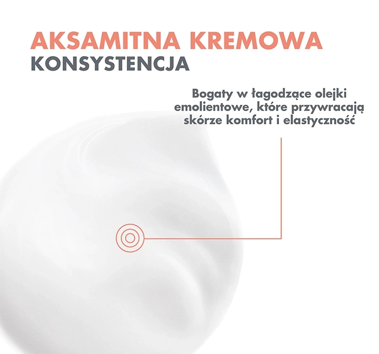 Die samtig-cremige Textur ist mit nährenden, weichmachenden Ölen angereichert. Die Creme nährt die trockene Haut dank nährender Inhaltsstoffe, deren Struktur dem interzellulären Zement ähnelt. Sie enthält außerdem Avène-Thermalwasser, das beruhigend und weichmachend wirkt. Sie hinterlässt einen leichten, nicht fettenden Film auf der Haut.