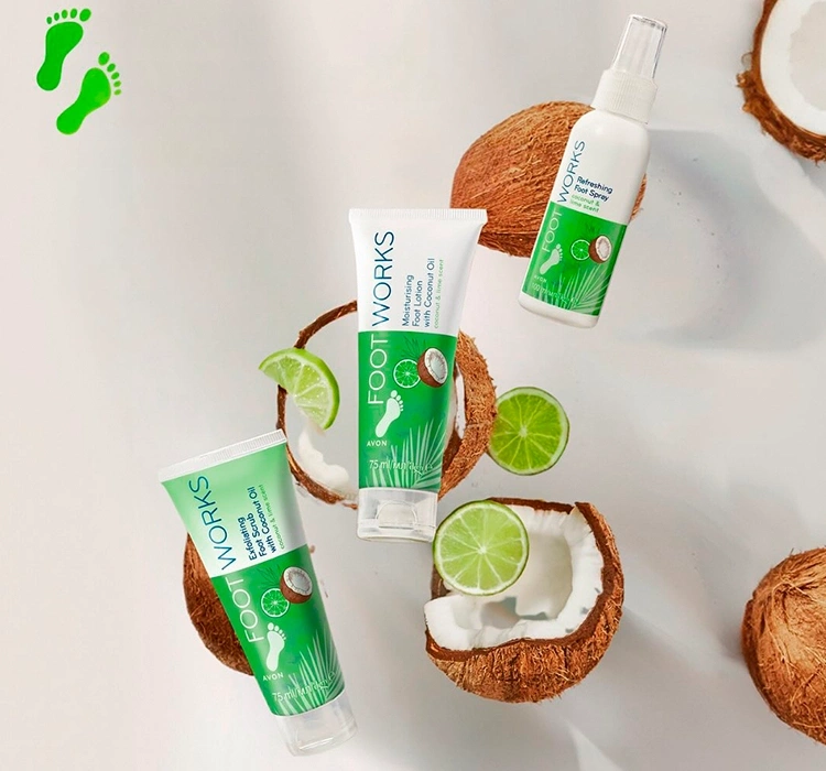 In den Avon Foot Works-Kosmetika finden Sie zahlreiche aktive Inhaltsstoffe und natürliche Extrakte, die sich positiv auf das Aussehen und den Zustand der Fußhaut auswirken. Die Foot Works-Linie ist in kleinere Unterserien unterteilt, je nachdem, ob Ihre Füße Erfrischung, Feuchtigkeit, Schutz vor Schweiß oder andere Pflege benötigen. Sie werden sicherlich ein Produkt finden, das Ihren Erwartungen entspricht.