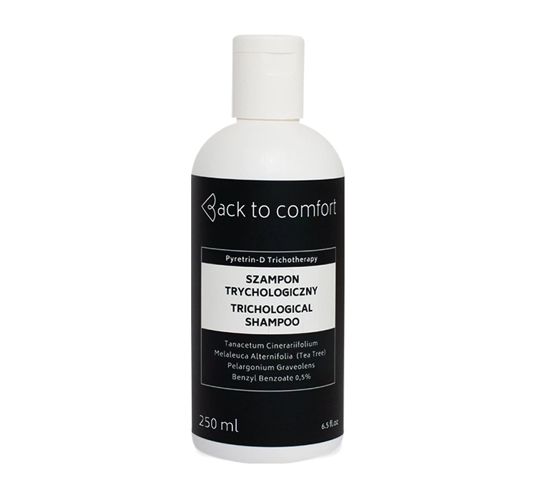 Das trichologische Shampoo für Haare aus der Back To Comfort Pyretrin-D Serie ist ein äußerst wirksames Kosmetikprodukt, das eine ausgezeichnete Wahl für Personen ist, die mit übermäßigem Fettgehalt, lästigen Schuppen, Juckreiz und der Tendenz zu Scabies-Infektionen kämpfen. Die innovative Formel basiert auf einem wertvollen Komplex aus biologisch abbaubaren Detergenzien, Teebaumöl und natürlichen Extrakten, der das Erscheinungsbild und den Zustand der Haare sichtbar verbessert.