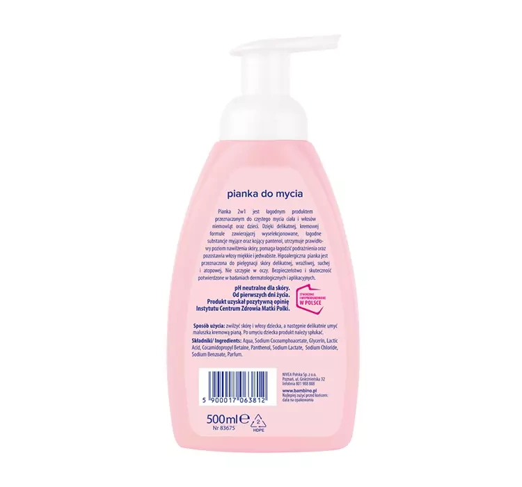 Der 2in1-Schaum von Bambino ist ein sanftes Produkt, das für häufiges Körper- und Haarwaschen von Säuglingen und Kindern entwickelt wurde.