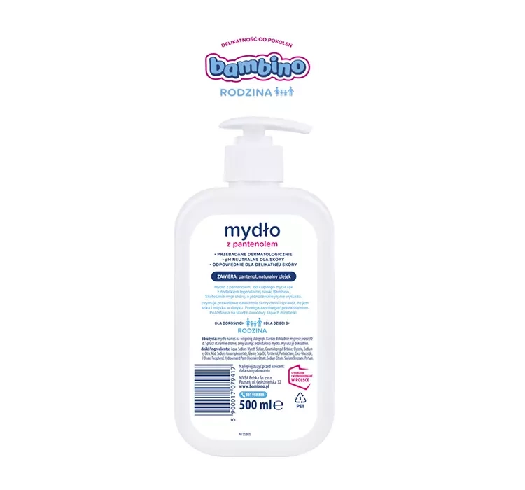 Suchst du eine universelle Kosmetik? Perfekt für die ganze Familie, sowohl für Kinder als auch für Eltern. Die Bambino Family Seife ist ein vielseitiges Produkt, das dir ein Frischegefühl und Schutz vor dem Austrocknen garantiert. Außerdem riecht es angenehm, pflegt und spendet der Haut Feuchtigkeit. Das Kosmetikum wurde strengen dermatologischen Tests unterzogen, um sicherzustellen, dass es für die empfindliche Haut von Kindern unbedenklich ist. Vertraue der polnischen Marke Bambino Familie, die für ihre Kosmetik ausgesuchte, natürliche und bewährte Inhaltsstoffe auswählt!