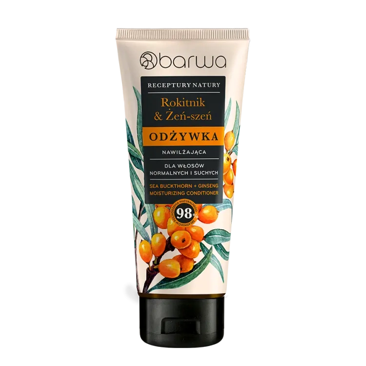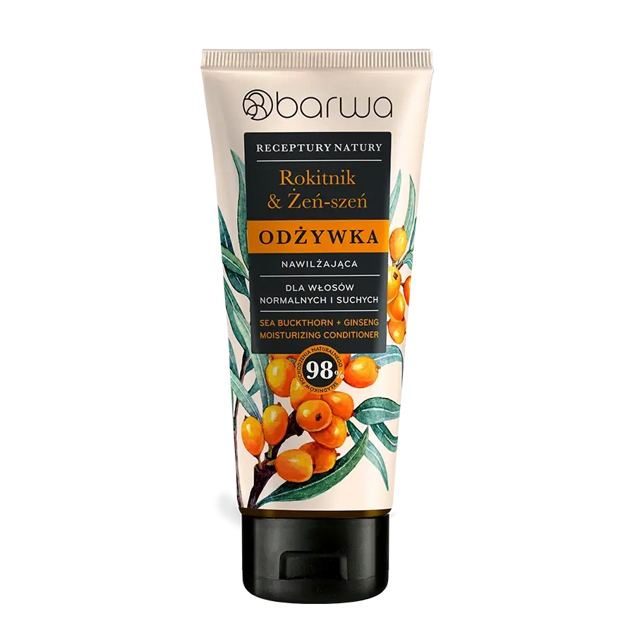 Die Formel der feuchtigkeitsspendenden Spülung basiert zu 98 % auf Inhaltsstoffen natürlichen Ursprungs, wobei eine Schlüsselrolle der Sanddorn einnimmt, der reich an Antioxidantien und Vitaminen ist, sowie Ginseng, bekannt für seine stärkenden Eigenschaften. Sanddorn nährt das Haar intensiv, schützt es vor Austrocknung und wirkt regenerierend von der Wurzel bis in die Spitzen. Ginseng stärkt die Haarstruktur, erhöht die Elastizität und beugt Haarbruch vor. Unterstützt wird die Wirkung durch Sheabutter und Jojobaöl, die das Haar tiefenwirksam befeuchten, glätten und seine Kondition verbessern. Regelmäßige Anwendung macht das Haar seidig weich, elastisch und glänzend.