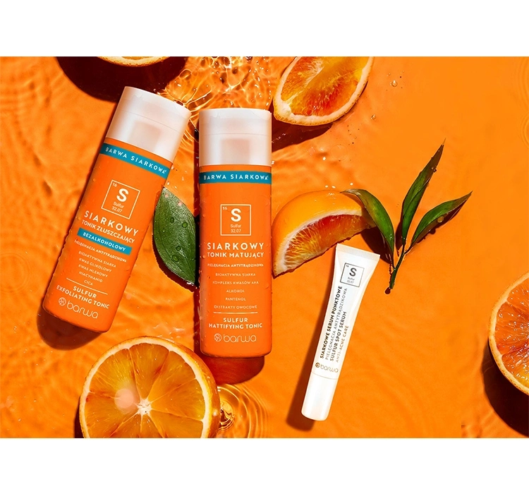 Barwa Schwefel ist eine Kosmetiklinie zur Pflege der fettigen, problematischen Haut mit Akne. Die Formeln enthalten Schwefel, der im Kampf gegen Hautunreinheiten behilflich ist. Schwefel wirkt gegen Akne, begrenzt das Risiko von Pickelentstehung, erfrischt und mattiert den Teint. Die Reihe ist breit und bietet Gels, Flüssigkeiten, Seifen sowie Produkte im Schaum. Jeder findet etwas für sich.