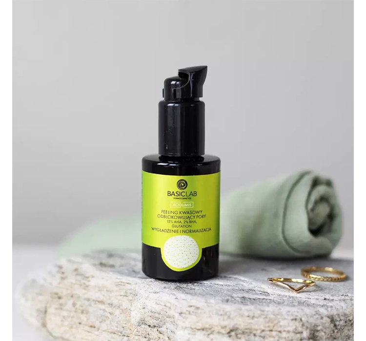 Der Poren öffnende Säurepeeling aus der BasicLab Acidumis Serie ist speziell für die tägliche Pflege von Haut mit Neigung zu offenen und geschlossenen Mitessern konzipiert. Dank seiner wirksamen Inhaltsstoffe wie 15% Mandelsäure und Glykolsäure, 2% verkapselter Salicylsäure, exfolierendem Tripeptid, Glutathion und Resveratrol bietet das Produkt umfassende Hautpflege. Es verbessert den Teint und die Hautstruktur, entfernt abgestorbene Hautzellen und stimuliert die Hauterneuerung. Das Peeling reinigt und öffnet die Poren, reduziert ihre Sichtbarkeit und wirkt antioxidativ sowie glättend.
