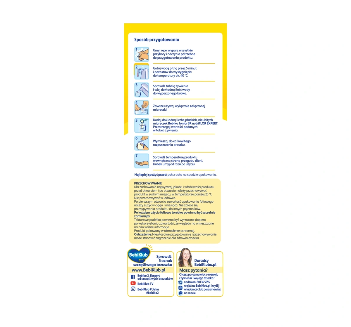 • Bereite Bebiko Junior 3R NUTRIflor Expert immer frisch zu und verwende es innerhalb von 2 Stunden.
