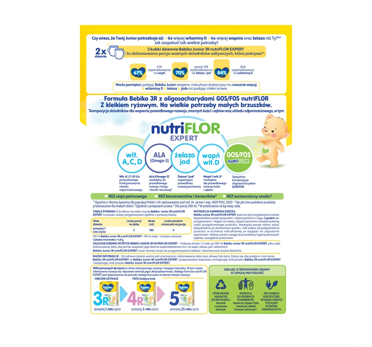 Bebiko NutriFlor Expert 3R ist eine hervorragende Wahl für Eltern, die die gesunde Entwicklung ihres Kindes optimal unterstützen möchten. Die Formel ist für Kinder ab dem 1. Lebensjahr geeignet, fördert ihre tägliche Aktivität und Gesundheit und bietet eine bequeme Zubereitung sowie eine hohe Qualität, die auf die Bedürfnisse wachsender Kinder abgestimmt ist.