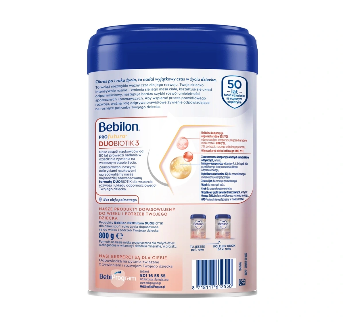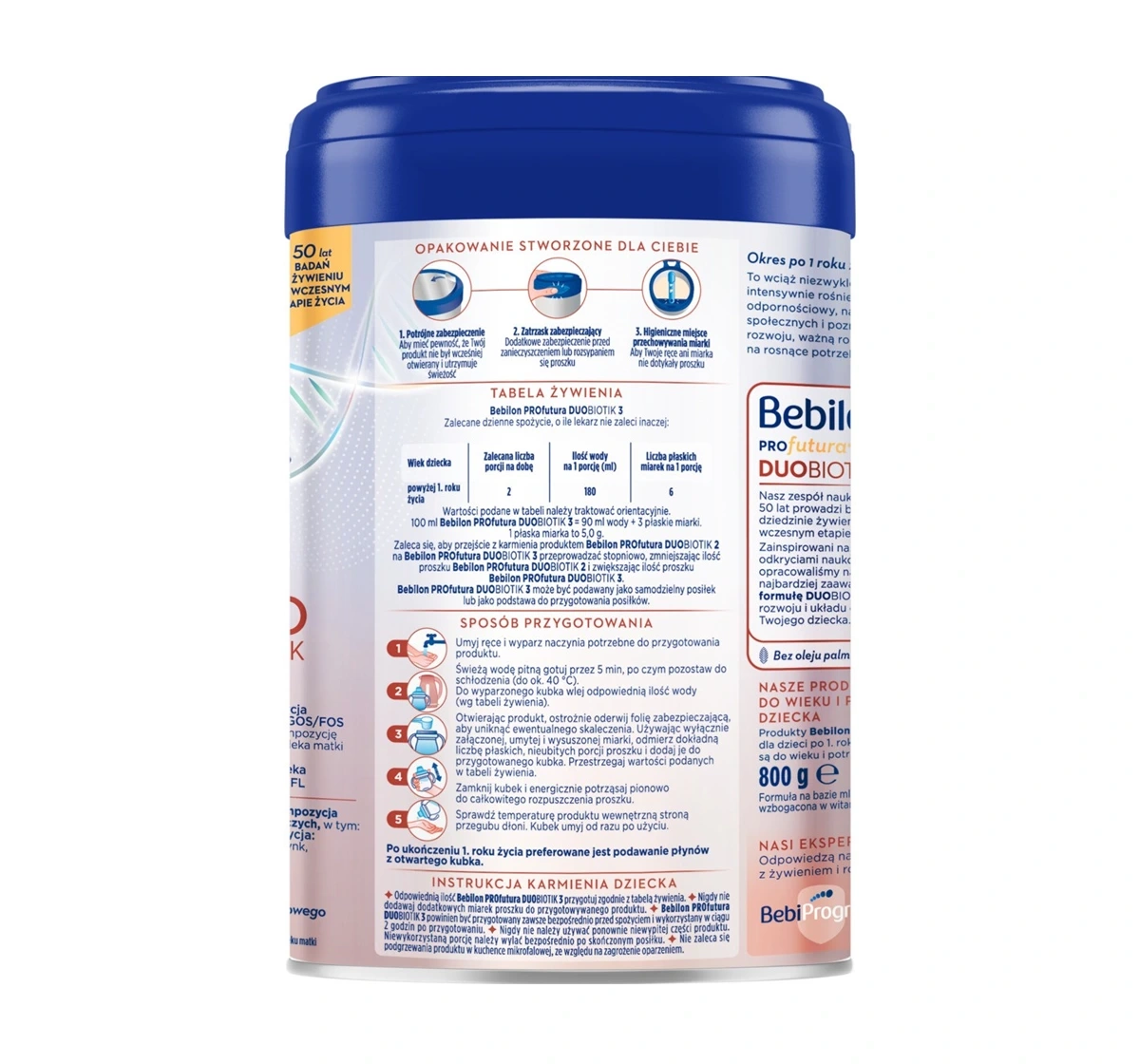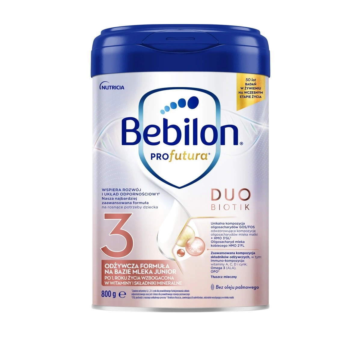 Bebilon Profutura DuoBiotik 3 ist eine fortschrittliche Milchformel, die speziell für Kinder ab 1 Jahr entwickelt wurde. Experten von Bebilon haben sie entwickelt, um die Ernährung des Kindes in einer Phase intensiven Wachstums zu ergänzen. Dank der einzigartigen Zusammensetzung unterstützt sie die kognitive und körperliche Entwicklung des Kindes.