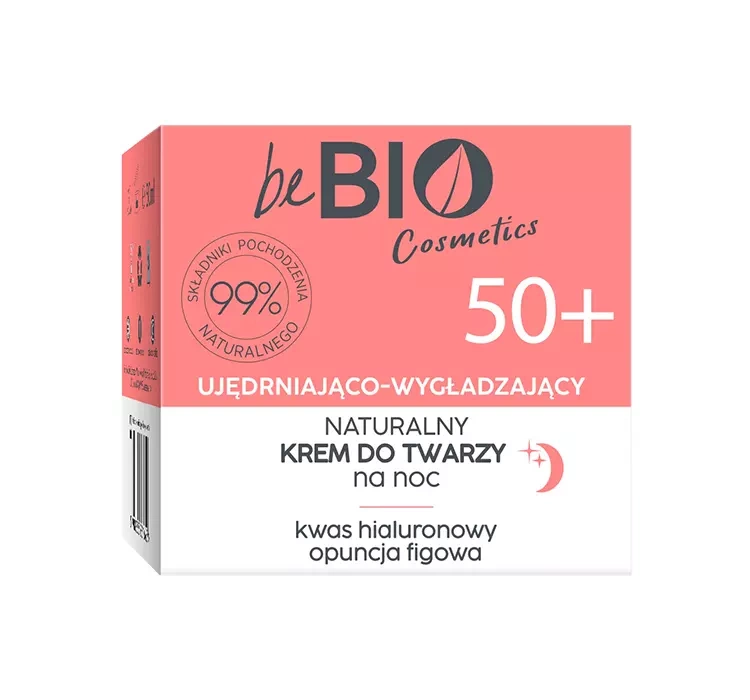 Die Gesichtscreme BeBio Straffend - Glättende 50+ ist eine natürliche Nachtkosmetik, die speziell für die reife Haut entwickelt wurde. Die innovative Formel der Kosmetik enthält eine ungewöhnliche Kombination von natürlichen Inhaltsstoffen, die das Aussehen und den Zustand der Haut positiv beeinflussen. Kostbares Macadamia-Öl wirkt stark pflegend, regenerierend und elastifizierend und schützt wirksam vor den negativen Auswirkungen äußerer Faktoren. Kaktusfeigenöl ist eine reichhaltige Quelle von Antioxidantien, mehrfach ungesättigten Fettsäuren und Aminosäuren, die vorzeitigen Alterungsprozessen wirksam entgegenwirken. Es verbessert sichtbar die Festigkeit und Dichte der Epidermis und reduziert das Auftreten von Falten und gibt der Haut so ein schönes, jugendliches Aussehen zurück. Hyaluronsäure spendet Feuchtigkeit und glättet den Teint, während Aloe-Vera-Blattsaft hilft, das natürliche Gleichgewicht zu erhalten. Außerdem wurde die Zusammensetzung mit Vitamin E angereichert, das die Auswirkungen von freien Radikalen und Schadstoffen wie Smog oder Umweltverschmutzung reduziert. Bei regelmäßiger Anwendung wird die Haut glatt, geschmeidig, straff und samtig weich.
