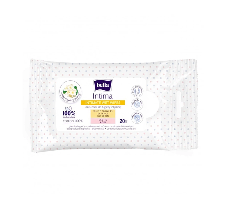 Die mit Pflegelotion getränkten Bella Intima Tücher bestehen aus weichem Material, das keine Irritationen verursacht. Wichtig: Sie sind zu 100 % biologisch abbaubar. Ideal für unterwegs oder auf Reisen, wenn der Zugang zu Wasser und Pflegeprodukten eingeschränkt ist. Gynäkologisch getestet.