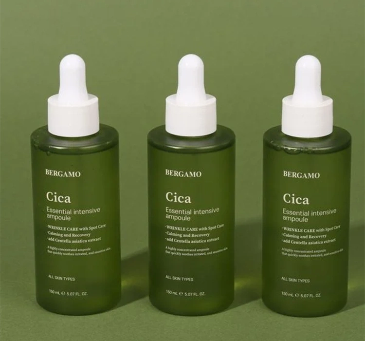 KoreaBergamo Cica Essential Intensive Facial Moisturising Ampoule spendet der Haut Feuchtigkeit, glättet und strafft sie, so dass sie sich weich anfühlt. Unterstützt die Bekämpfung von Unreinheiten, Pickeln und Mitessern. Die Ampullenformel ist angereichert mit Nährstoffen wie: Centella Asiatica-Extrakt, der die Kollagensynthese anregt und eine Anti-Falten-Wirkung hat; Centella Cordata-Extrakt strafft die Haut und wirkt entzündungshemmend und antioxidativ; Hamamelis-Extrakt hilft, Unreinheiten zu bekämpfen, während er die Haut reinigt und aufhellt; Grüntee-Extrakt spendet der Haut Feuchtigkeit, strafft sie und bekämpft Bakterien