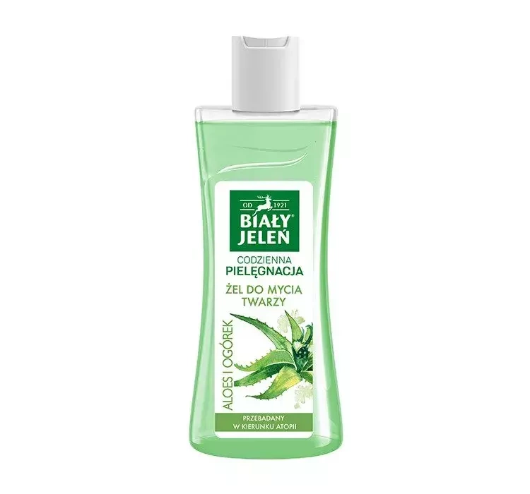 Das hypoallergene Gel für Gesichtswaschen von Biały Jeleń mit Aloe und Gurke eignet sich für die Reinigung der normalen und Mischhaut. Entfernt zart Make-up-Reste und Verschmutzungen sowie beugt der Entwicklung von Bakterien vor. Die Haut ist sorgfältig gereinigt, erfrischt, glatt und weich.