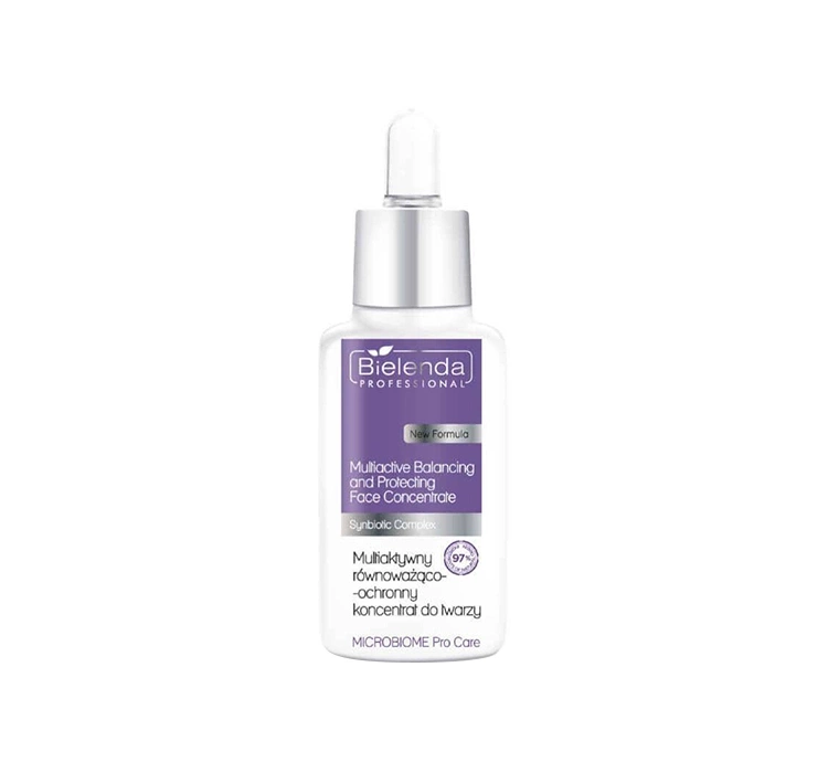 Das multiaktive ausgleichend-schützende Gesichtskonzentrat Bielenda Microbiome Pro Care hilft beim Wiederaufbau des Mikrobioms und schützt die Haut vor negativen äußeren Einflüssen. Es bietet Regeneration, Beruhigung und stellt den Komfort der Haut wieder her.