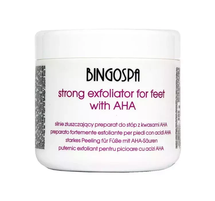 Wenn du ein Problem mit Hornhaut an Füßen und Fersen hast, verwende das BingoSPA Fußpeeling und genieße perfekt glatte Füße. Die Zusammensetzung des Kosmetikums umfasst AHA-Fruchtsäuren sowie Pflanzenextrakte und Öle.