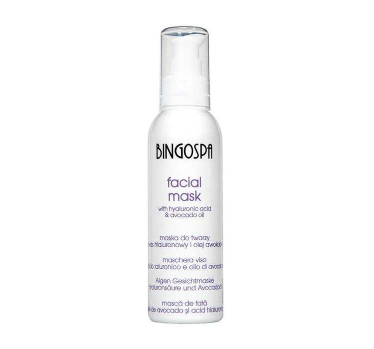 Die Gesichtsmaske mit Hyaluronsäure und Avocadoöl von BINGOSPA ist in einer praktischen Pumpflasche verpackt, sodass das Dosieren der richtigen Menge des Kosmetikprodukts kinderleicht ist.