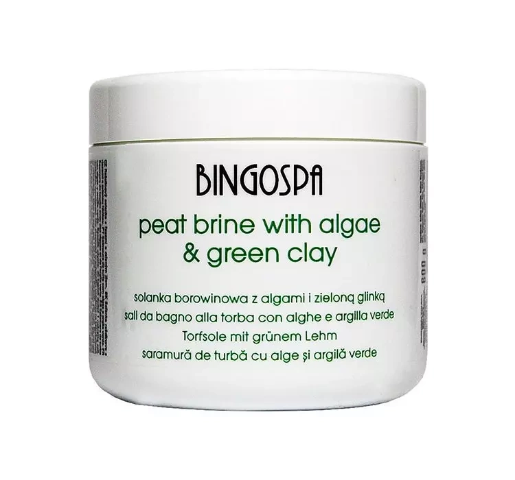 SPA Peat Brine with Alga & Green Clay ist eine Kombination aus vielseitigem Peloid mit Algen und grüner Tonerde. Dank dieser Zusammensetzung wird die Haut nach dem Baden regeneriert, gereinigt und perfekt gepflegt.