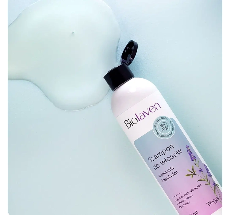 Das kräftigend-glättende Shampoo Biolaven Organic eignet sich für regelmäßige Pflege von jedem Haartyp. Es reinigt dezent und effektiv die Haare, dabei reizt auch die empfindlichste Kopfhaut nicht. Das Weintraubenkernöl schenkt den Strähnen Weichheit, Glätte und WIderstandsfähigkeit gegen ungünstige Umwelteinwirkungen.