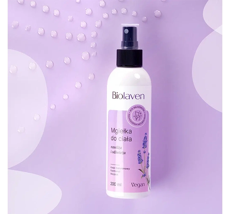 Biolaven Body Mist erfrischt die Haut perfekt und sorgt für ein angenehmes Gefühl der Kühlung - es ist perfekt für die Anwendung während der Sommerhitze, unterwegs oder im Urlaub. Der Nebel von Biolaven spendet tiefgehend Feuchtigkeit und pflegt die Haut, damit sie sich glatt und samtweich anfühlt.