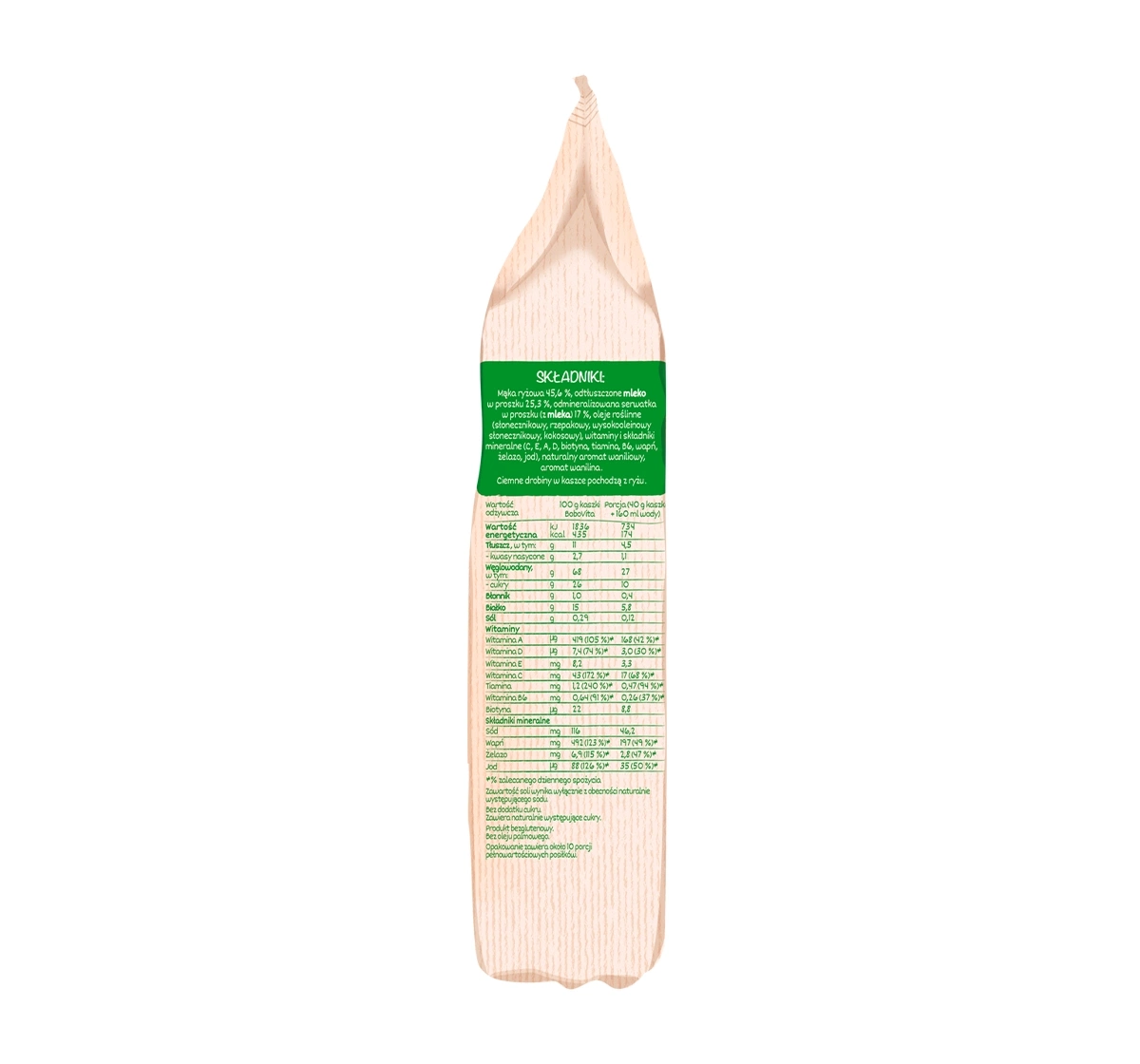 Der Milch-Reisbrei mit Vanillegeschmack von BoboVita enthält keine Konservierungsstoffe oder Farbstoffe, was für Natürlichkeit und Sicherheit für die Kleinsten sorgt. Dank seiner Eigenschaften stellt der BoboVita Brei eine hervorragende Ergänzung der Ernährung von Babys dar und sorgt für einen gesunden Start und Unterstützung in den ersten Lebensmonaten.