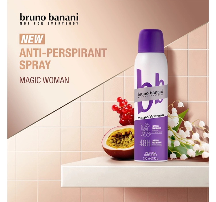 Das Deospray Bruno Banani Magic Woman bietet bis zu 48 Stunden zuverlässigen Schutz vor unangenehmen Gerüchen und verleiht langanhaltende Frische. Magic Woman ist ein sinnlicher, fruchtig-blumiger Duft, der den geheimnisvollen Zauber weiblicher Schönheit verkörpert.