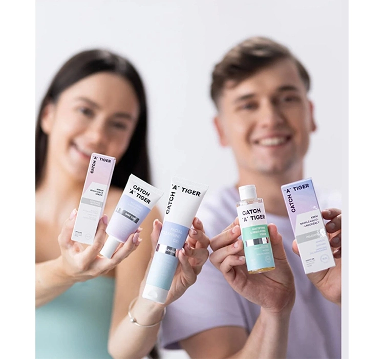Catch a Tiger ist eine Kosmetikmarke, die sich an junge Haut richtet, insbesondere an problematische Haut – Mischhaut, fettige Haut und Akne-Haut. Der Kosmetikmarkt ist wie ein Dschungel, in dem die Vielzahl an Produkten junge Menschen überwältigen und unverständlich erscheinen lassen kann. Die Marke Catch a Tiger ist ein echter Pflege-Tiger. Sie bietet fachliche Unterstützung und hilft dir, mit den richtigen Produkten eine bewusste Pflege zu beginnen. Der ganzheitliche Ansatz zur Pflege junger Haut, insbesondere problematischer Haut, wird dir helfen, ein schönes und vor allem gesundes Aussehen zu erreichen, das dir mit Sicherheit Selbstvertrauen geben wird. Verstehe die Bedürfnisse deiner Haut mit der Marke Catch a Tiger.