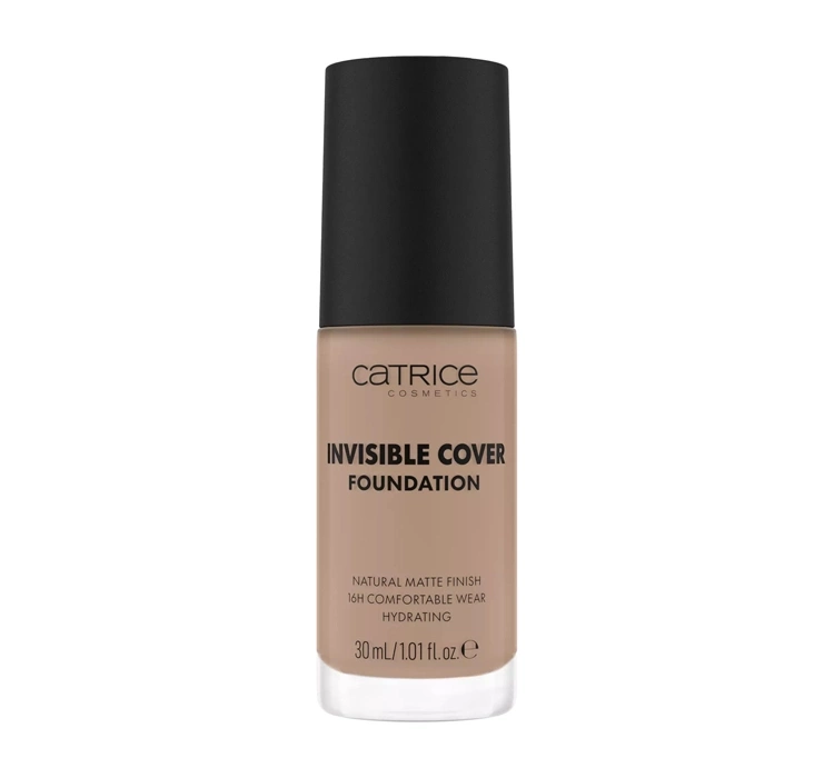 Die flüssige Foundation Invisible Cover Foundation von Catrice ist die perfekte Wahl für alle, die sich ein lang anhaltendes Make-up mit natürlichem, mattem Finish wünschen. Die leichte Formel bietet eine mittlere Deckkraft, die Unregelmäßigkeiten effektiv kaschiert und die Haut atmen lässt. Dank Hyaluronsäure und Aloe Vera versorgt die Foundation den Teint intensiv mit Feuchtigkeit und lässt ihn den ganzen Tag lang gesund und strahlend aussehen.