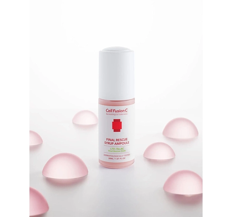 Die feuchtigkeitsspendende Ampulle Cell Fusion C Final Rescue Syrup Ampoule beruhigt Rötungen und Hautirritationen und ist daher das ideale Serum für fettige, problematische, gerötete und empfindliche Haut. Das beruhigende Serum Final Rescue Syrup Ampoule der asiatischen Marke Cell Fusion C lindert effektiv Überempfindlichkeiten und bekämpft Hautunreinheiten dank des enthaltenen Calamins. Es bietet eine umfassende Pflege, indem es abgestorbene Hautzellen und Talg entfernt, während Hyaluronsäure die Haut mit Feuchtigkeit versorgt und Trockenheit sowie Schuppung reduziert. Algenextrakt reinigt die Poren und verleiht der Haut einen natürlichen Glow, während ein speziell entwickelter Komplex den pH-Wert der Haut ausgleicht.