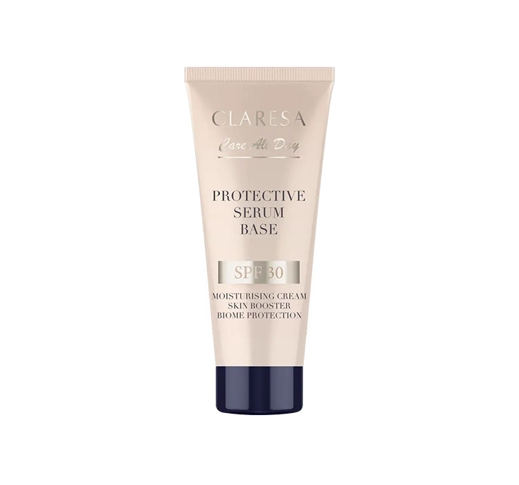 Claresa Protective Serum-Base SPF30 ist eine leichte, feuchtigkeitsspendende Make-up-Grundierung mit SPF 30, die tägliche Pflege mit Sonnenschutz kombiniert. Bereits nach der ersten Anwendung wirkt die Haut glatter, elastischer und optimal mit Feuchtigkeit versorgt – für einen strahlenderen und gesunden Teint. Dank ihrer universellen Formel eignet sie sich hervorragend als Make-up-Basis oder als eigenständiges feuchtigkeitsspendendes Pflegeprodukt.
