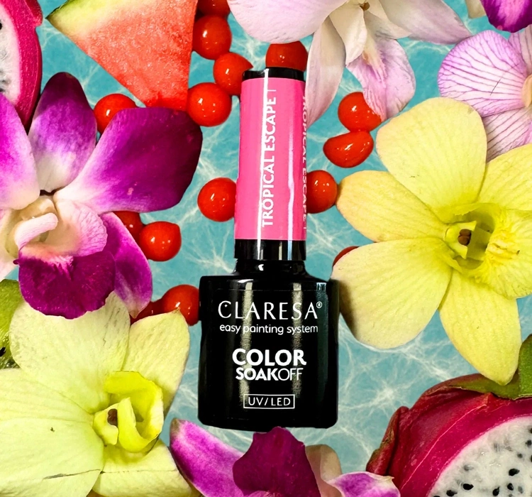 Claresa Tropical Escape ist eine Kollektion von Hybridlacken, inspiriert von tropischen Inseln, saftigen Früchten und exotischen Sonnenuntergängen. Sie umfasst kräftige Neonfarben, romantische Pastelltöne und glitzernde Akzente – und spiegelt die vielen Facetten der Weiblichkeit wider – von energiegeladen bis sinnlich. Die perfekte Wahl für Frauen, die den Sommer, das Reisen und Farben lieben – unabhängig vom Wetter.