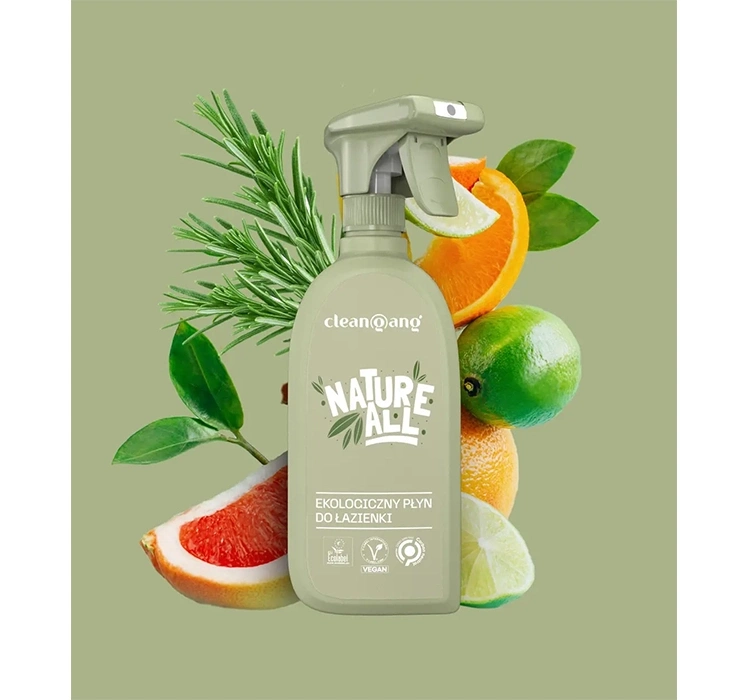 Umweltfreundlicher und biologisch abbaubarer Badezimmerreiniger Cleangang Nature All sorgt für maximale Sauberkeit und Frische. Der Reiniger hinterlässt das Badezimmer glänzend und duftend. Er entfernt Schmutz, Kalkablagerungen und Seifenreste und löst effektiv Kalkablagerungen durch hartes Wasser auf. Dank seiner einzigartigen Formel, die auf natürlichen Rohstoffen wie Zucker und Zitronensäure basiert, hinterlässt er keine Streifen oder Schlieren.