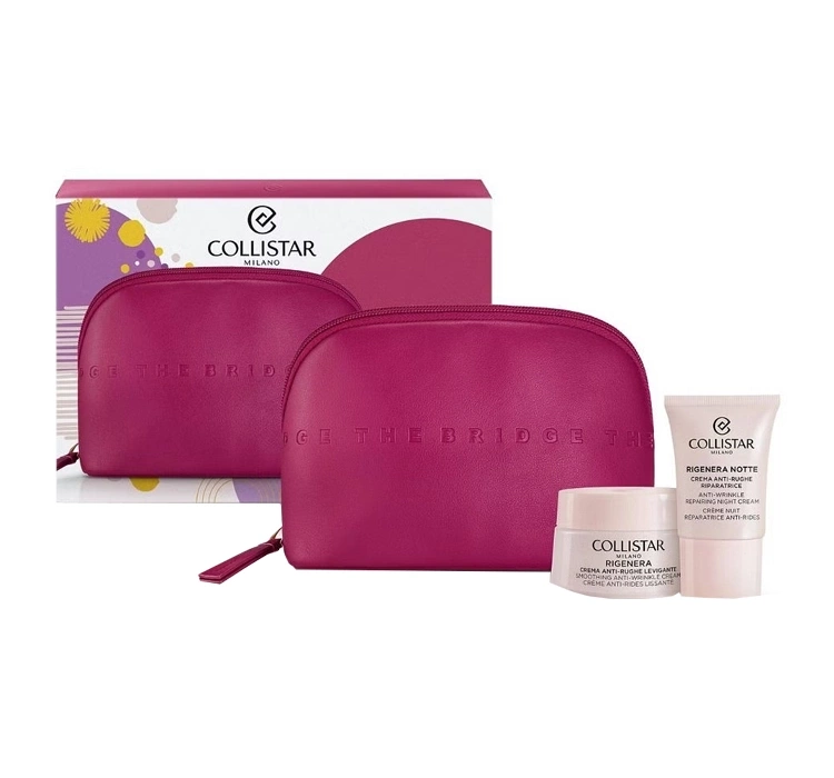 • Das Collistar-Set enthält eine Anti-Falten-Gesichtscreme und ein Serum aus der Collistar Rigenera Kollektion und eine Kosmetiktasche THE BRIDGE.