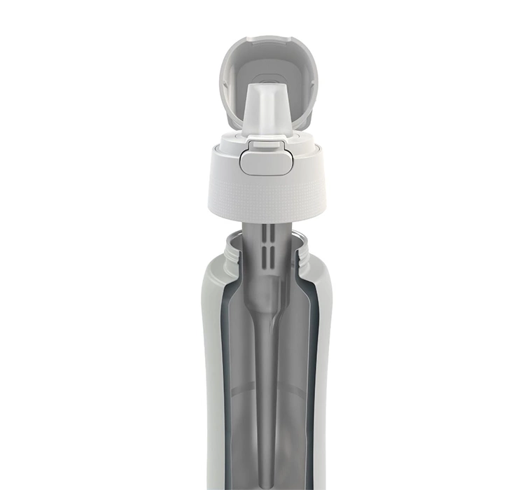 • ausgestattet mit einem hypoallergenen Silikonmundstück und einem auslaufsicheren Verschlusssystem mit Knopf