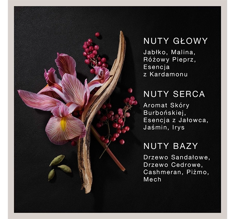 - Kopfnote: Kardamom, Apfel, Himbeere, Rosa Pfeffer