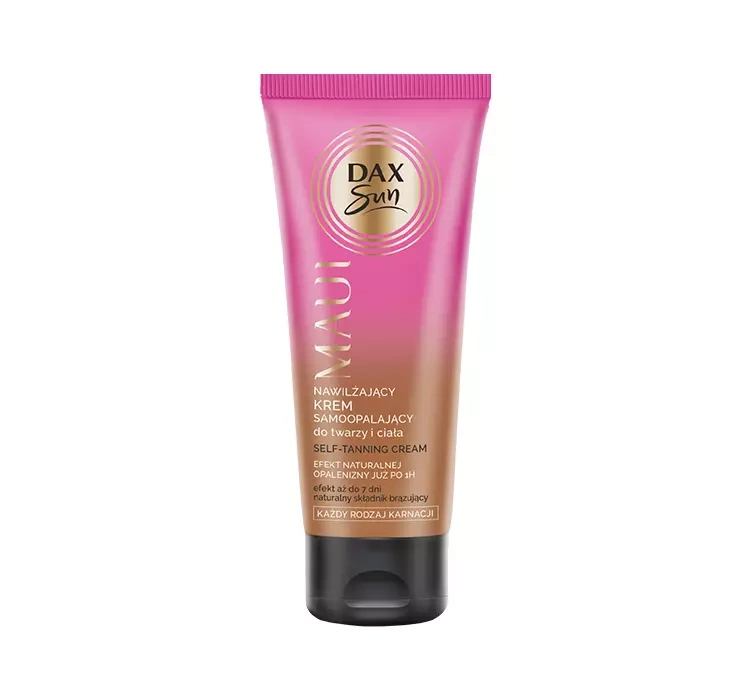Dax Sun Maui ist eine feuchtigkeitsspendende Bräunungscreme für Körper und Gesicht, die für einen schönen, bis zu 7 Tagen anhaltenden Effekt natürlicher Bräune schenkt. Die innovative Formel basiert auf der perfekten Verbindung von 3 natürlichen Bräunungsstoffen: Karamell, DHA und Erythrulose, die dem Teint einen phänomenalen, lang anhaltenden Farbton schenken. Die Kosmetik versorgt zusätzlich die Haut tief mit Feuchtigkeit und beugt ihrer übermäßigen Austrocknung während des Tages vor sowie schützt sie vor der negativen Einwirkungen der freien Radikalen, was wirksam die vorzeitige Hautalterung hemmt.
