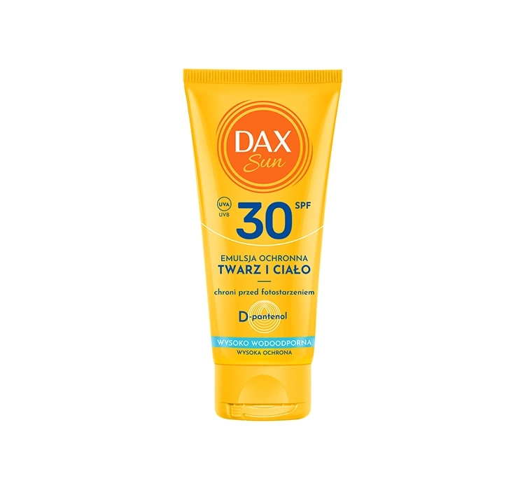 Schutzemulsion für Gesicht und Körper SPF 30 Dax Sun ist ein Produkt, das speziell für besonders empfindliche Haut entwickelt wurde, die besonders empfindlich auf Sonnenstrahlen reagiert. Dank eines photostabilen UVA/UVB-Filtersystems ⁣bietet es wirksamen Schutz vor Sonnenbrand, verringert das Risiko von Sonnenallergien und langfristigen Hautschäden. Es wirkt in der Dermis und minimiert die schädlichen Folgen der Sonnenexposition.