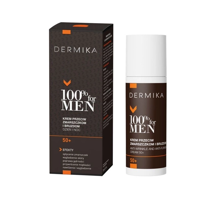 • Die Creme Dermika 100% For Men 50 reduziert Falten und Fältchen effektiv, befeuchtet, strafft und schützt die Haut vor schädlichen äußeren Einflüssen.