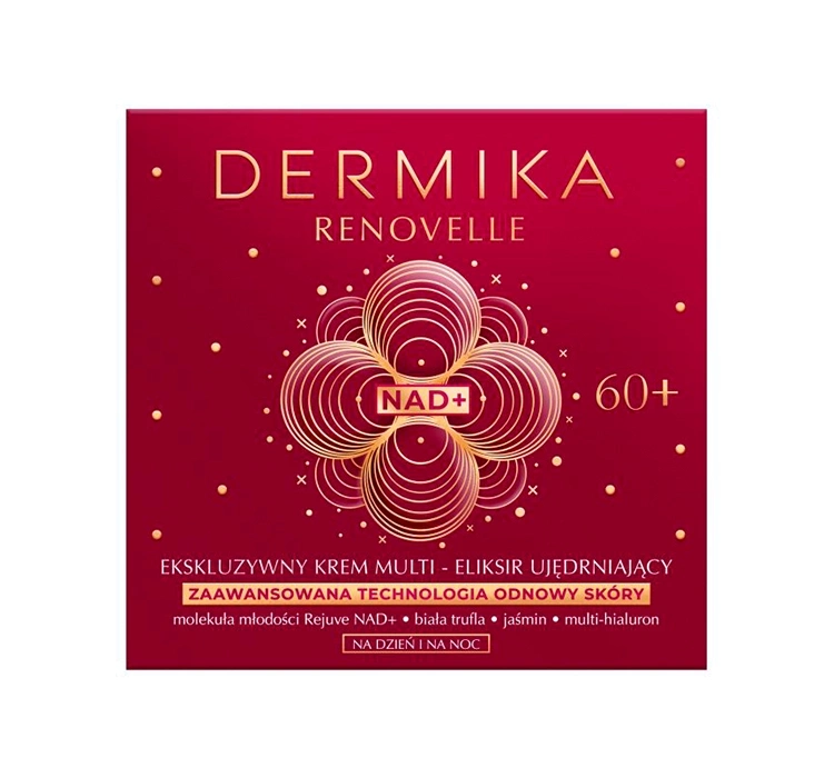Exklusive Creme – Multi-Elixier Straffend 60+ Dermika Renovelle ist ein luxuriöses Produkt für Tag und Nacht, speziell entwickelt für die Bedürfnisse reifer Haut, die mit zunehmendem Alter Festigkeit, Elastizität und natürlichen Glanz verliert. Die Creme wurde so formuliert, dass sie die Haut rund um die Uhr umfassend unterstützt – tagsüber schützt sie vor schädlichen Umwelteinflüssen, nachts fördert sie intensiv die Regenerationsprozesse. Die reichhaltige, samtige Textur bietet bereits bei der ersten Anwendung Komfort, indem sie die Haut mit einem sanften Feuchtigkeitsfilm umhüllt. Die ideale Wahl für Frauen ab 60, die eine wirksame Pflege in Verbindung mit einem täglichen Luxusritual suchen.