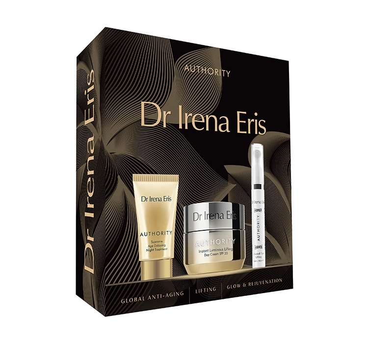 Dr. Irena Eris Authority ist eine Serie luxuriöser Anti-Aging-Kosmetika für die Gesichtspflege. Ihre einzigartigen, spezialisierten Formeln bieten spektakuläre Verjüngungseffekte und Lifting, wodurch die Haut jünger aussieht. Sie stellen das ausgeruhte und strahlende Aussehen von Gesicht, Augenlidern, Hals und Dekolleté wieder her. Dies wird durch die Entdeckung der Kombination aus kolloidalem Goldpeptid und einer einzigartigen, patentierten Technologie zur Aktivierung von Kaliumkanälen ermöglicht.