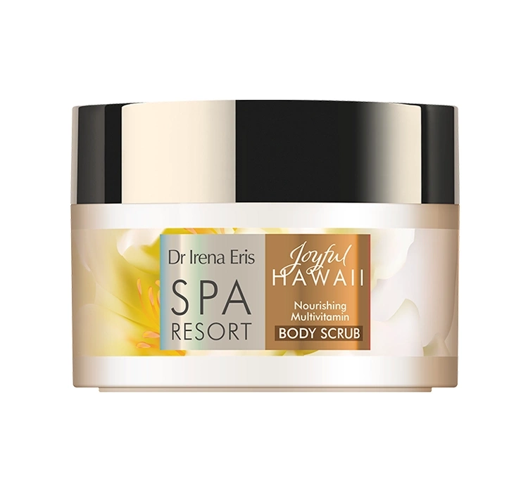 Dr Irena Eris Spa Resort Joyful Hawaii Nourishing Multivitamin Body Scrub ist ein besonderes Peeling, das dich auf eine Reise in eine exotische Welt der Blumendüfte mitnimmt, und nicht nur effektiv reinigt, sondern auch intensiv pflegt. Die seidige Textur des Zuckerpeelings umhüllt sanft die Haut, während die Kombination aus Feigenenzym – Ficin – und Litschipartikeln abgestorbene Hautzellen effektiv entfernt und die Haut geschmeidig und zart hinterlässt.