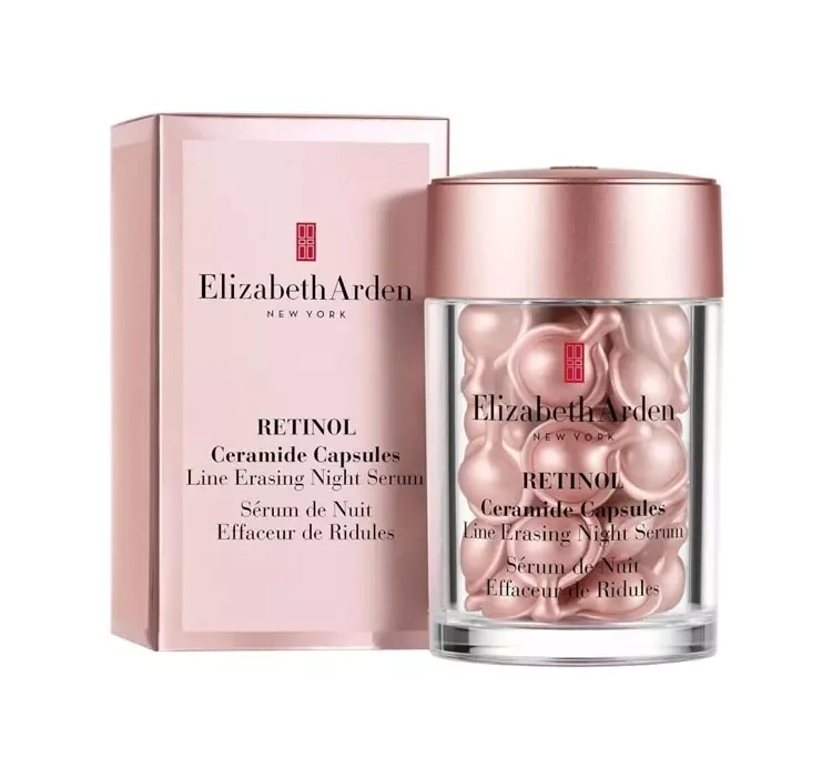 Elizabeth Arden Retinol Ceramide Capsules Line Erasing Night Serum ist luxuriöses, halbtransparentes Serum in Kapseln für leichte Anwendung geschlossen.