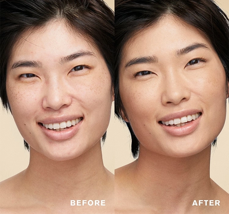 Tragen Sie eine kleine Menge des Produkts mit einem Pinsel, Schwämmchen oder den Händen auf. Verteilen Sie das Make-up zunächst mit tupfenden Bewegungen in die Haut einarbeitend, und verblenden Sie es dann mit kreisenden Bewegungen – von der Mitte nach außen. Wenn die Deckkraft nicht ausreicht, können Sie eine weitere Schicht auftragen. Fixieren Sie das Make-up mit Puder.