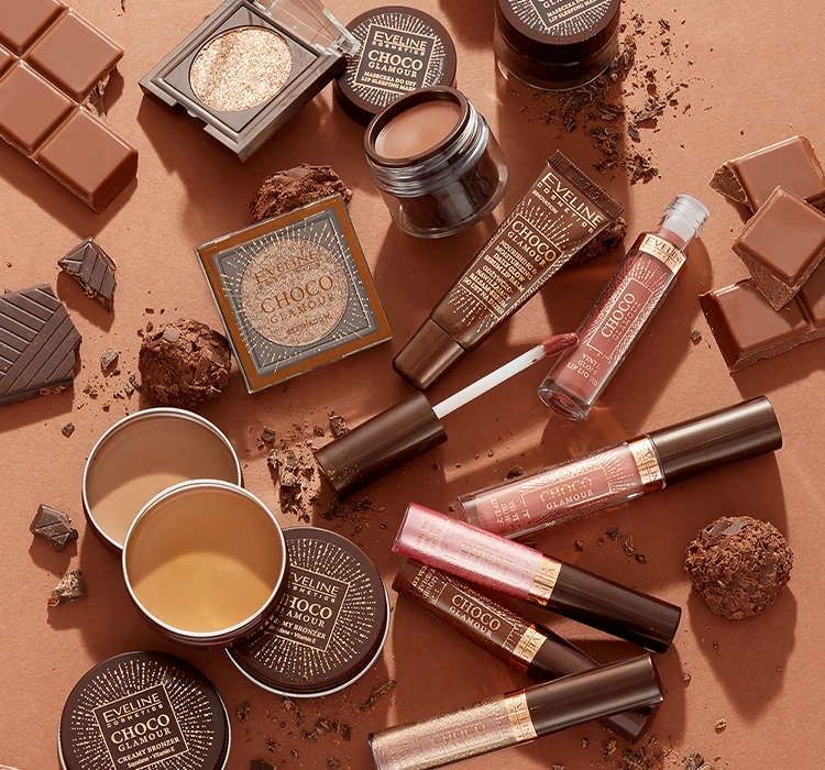Choco Glamour ist eine einzigartige Schokoladenkollektion der polnischen Marke Eveline. In dieser Serie findest du verschiedene Kosmetikprodukte, die dir helfen, jeden Tag ein beliebiges Styling zu kreieren - Vinyl-Lippenstifte, flüssige Lidschatten, Gesichtsbronzers, gepresste Lidschatten und Pflegeprodukte für die Lippen und vieles mehr! Die Kosmetika von Eveline Choco Glamour garantieren einen wunderbaren Make-up-Look. Die Produkte haben einen angenehmen Schokoladenduft, der das Auftragen angenehm macht und es zu einem reinen Vergnügen macht.