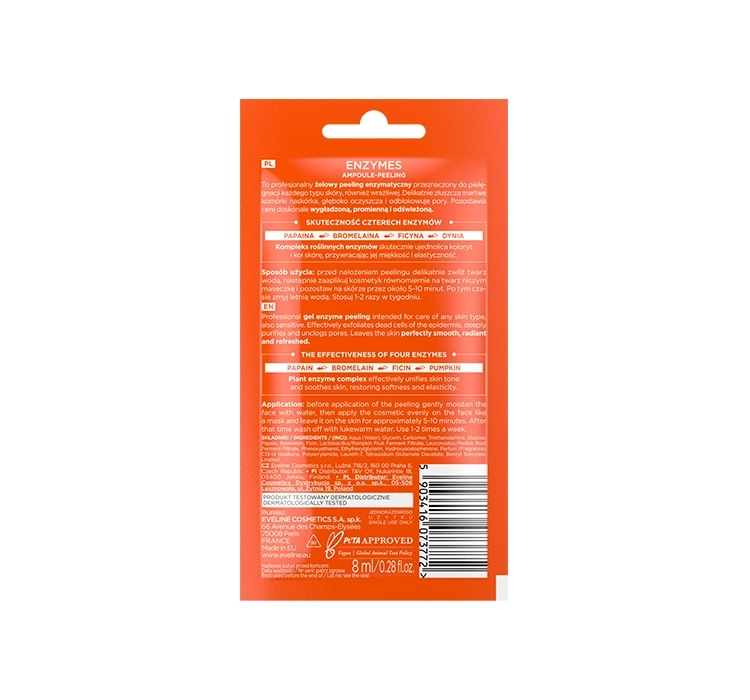 Die Formel basiert auf einem Komplex aus pflanzlichen Enzymen wie Papain aus Papaya, Bromelain aus Ananas, Ficin aus Feigenbaum sowie Enzymen aus Kürbiskernextrakt. Diese wirken sanft exfolierend, indem sie abgestorbene Hautzellen schonend auflösen. Zusätzlich unterstützen die Enzyme die Hautregeneration, verbessern die Elastizität und verleihen der Haut Weichheit und Frische. Die leichte Geltextur sorgt für angenehmen Auftrag, die vegane Formel entspricht modernen Pflegeansprüchen.