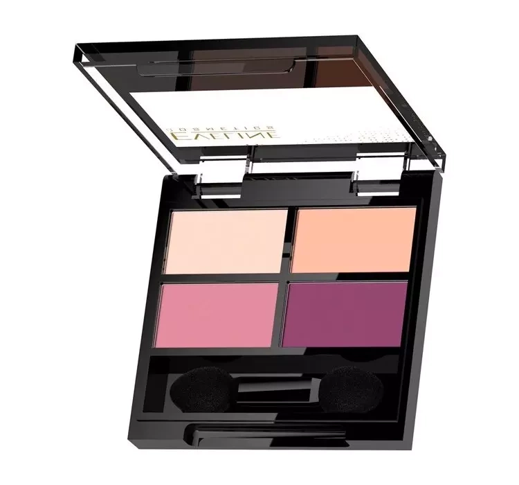 Gesättigte und intensive Schatten und ihre starke Deckkraft ermöglichen es dir, ein einzigartiges Make-up zu kreieren. Eveline Quattro Eyeshadow hat eine seidige Konsistenz, die sich leicht auftragen lässt. Die langlebige, moderne Formel reibt nicht ab und verschmiert nicht. Hochkonzentrierte Pigmente sorgen dafür, dass die Lidschatten perfekt auf den Augenlidern haften.
