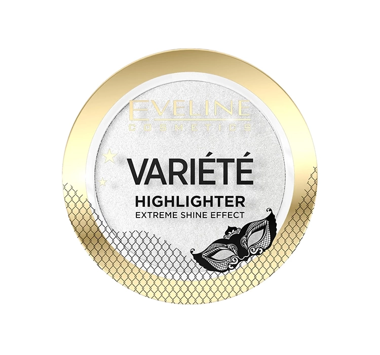 • Der Eveline Variete Highlighter im Stein bedeckt den Teint mit einer Glasplatte. Millionen schimmernder Krümel verleihen Gesichtern ein strahlendes Aussehen.